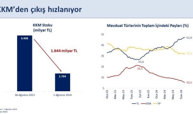 Hazine ve Maliye Bakanı Mehmet Şimşek, "Vergi avantajı sonlanan KKM hesaplarına TL mevduat ve katılma hesapları ile uyumlu şekilde stopaj uygulanmaya başlandı. Son dönemde hızlanan KKM'den çıkışın sürmesini bekliyoruz" dedi