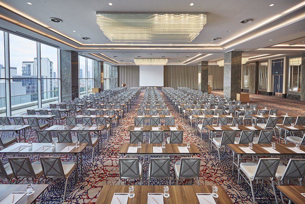 Wyndham Grand İstanbul Levent, özel teraslı ve gün ışığı alabilen yapıya sahip 3 balo salonunun da dahil olduğu, toplamda 23 adet toplantı salonuyla misafirlerine beklentilerin üzerinde deneyimler yaşatırken; özellikle profesyonel ekibi ve sunduğu son teknolojiyle de iş toplantılarının ilk tercihi oluyor.